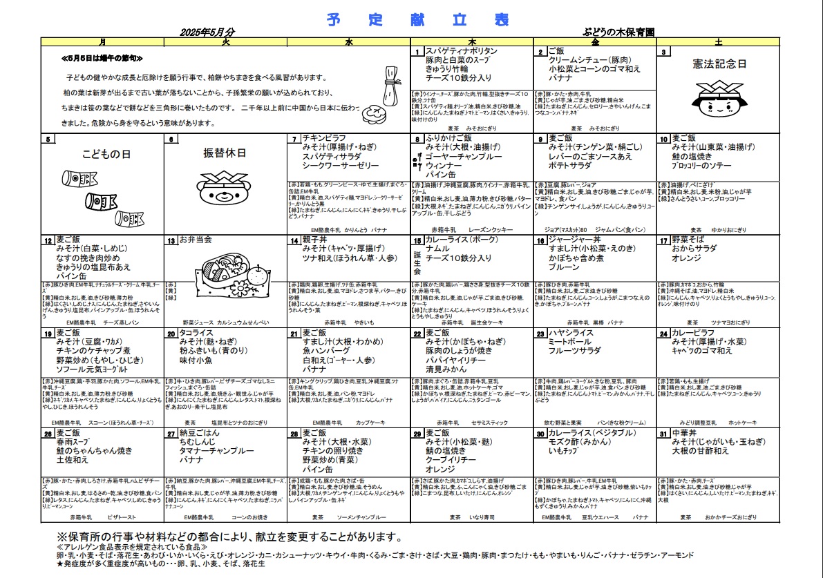 2025年、5月の「給食の献立」をホームページ上で公開しました。