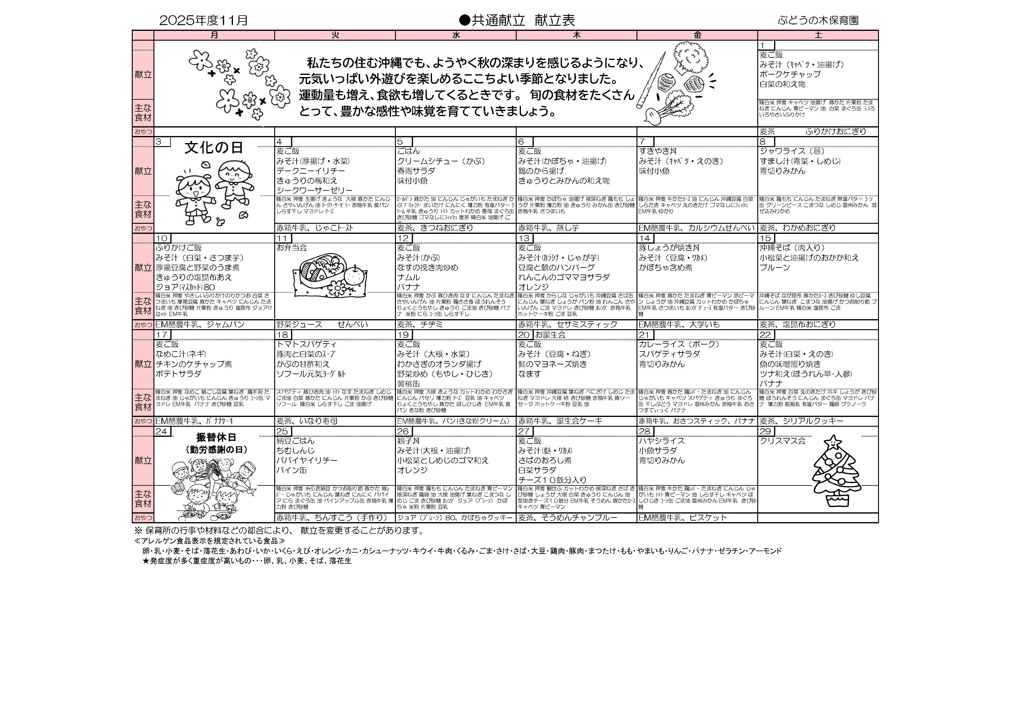 TOP > お知らせ > 2025年、11月の「給食の献立」をホームページ上で公開しました。